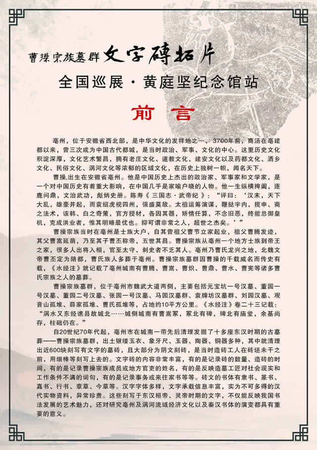 曹操宗族墓群文字砖拓片全国巡展——黄庭坚纪念馆