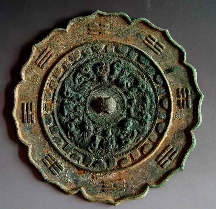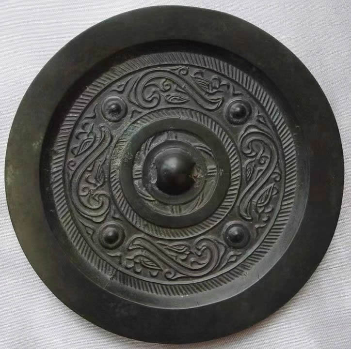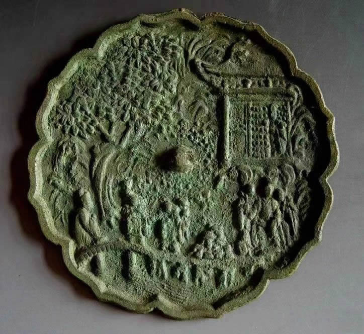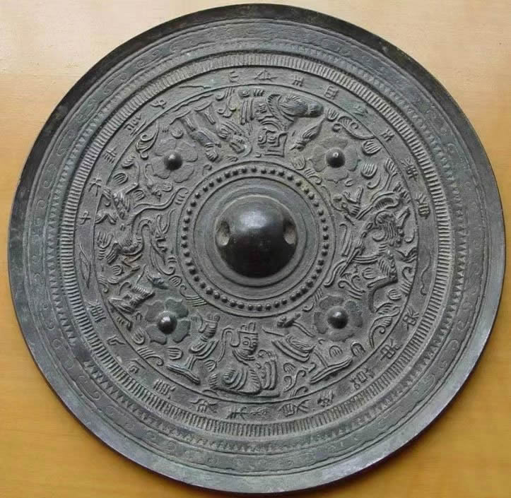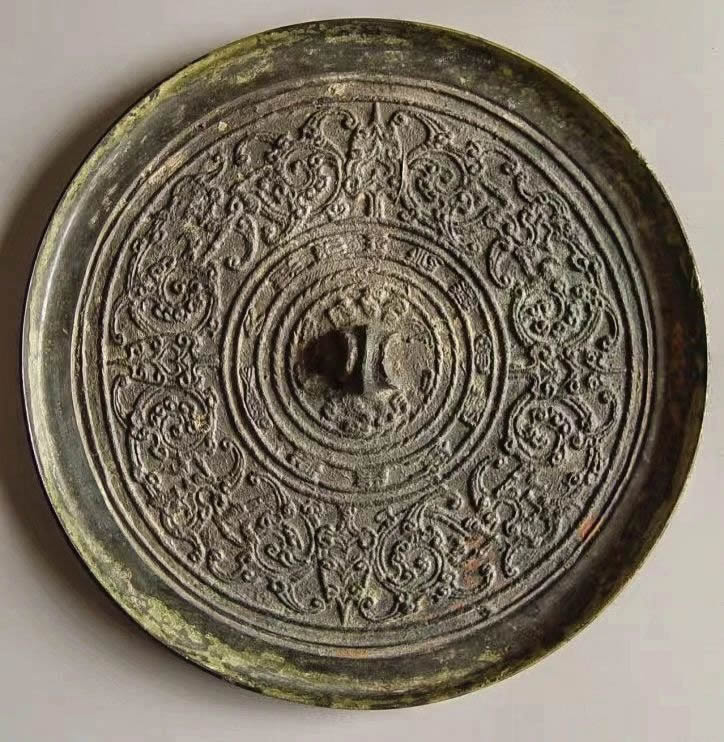 铜镜是古代中国人日常生活中的常务用具,其发展的历史极为漫长。铜镜在距今四千多年的齐家文化中就已经出现,而后经过商、西周、春秋,在战国得以发展,至汉唐臻于繁荣辉煌,又延续到宋元明清。清代中期,随着西方玻璃镜大量传入中国,铜镜的历史使命宣告完成。铜镜不仅是人们日常生活照容整装的实用品,也被用来佩挂装饰、驱邪佑福、传达情谊等,是一种具有珍贵艺术价值的工艺品。铜镜背面的纹饰和铭文,题材广泛,内容丰富多彩,反映了使用者和制作者所处历史时代的生活态度、审美情趣乃至整个社会风俗,写下了中国文化史上光彩夺目的一章。