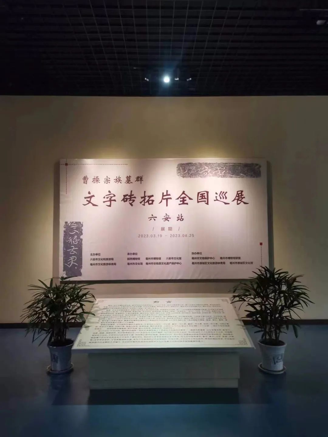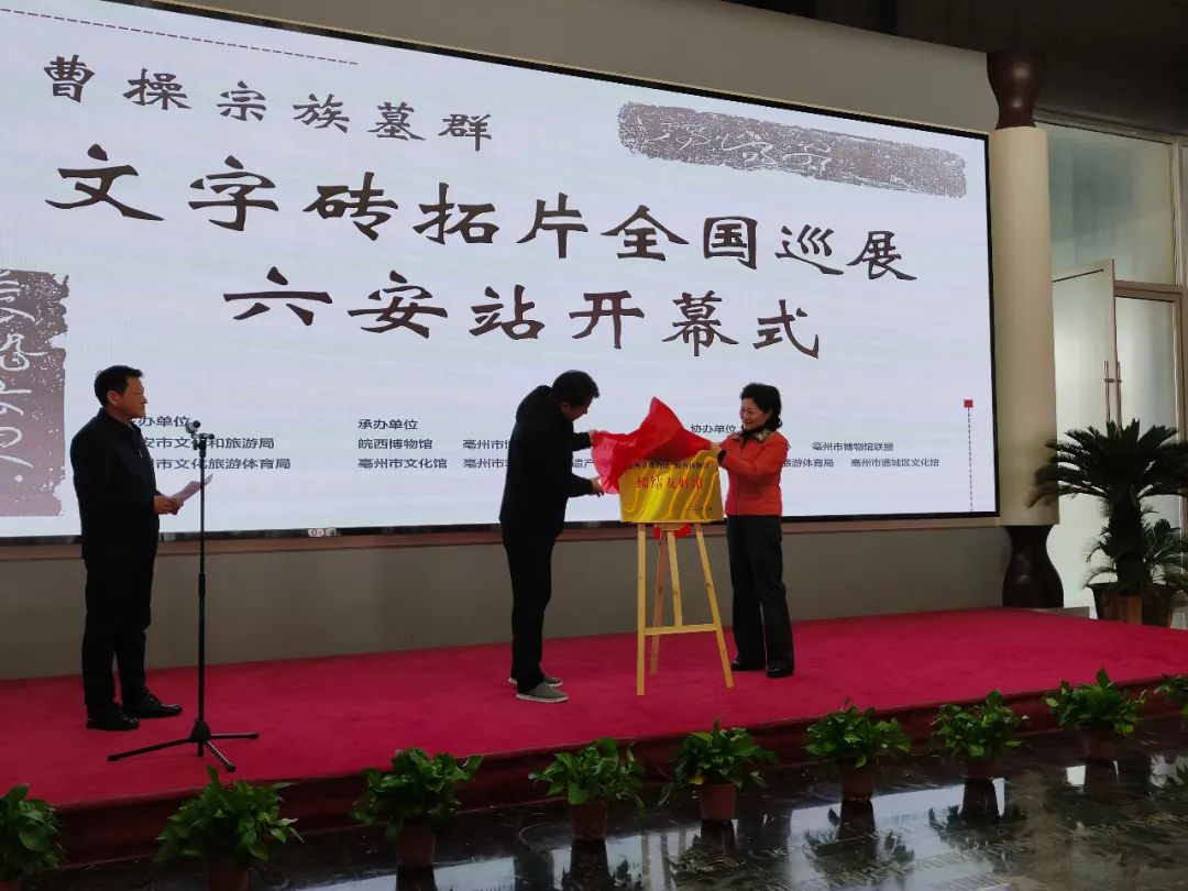 3月19日,由亳州市文化旅游体育局、六安市文化和旅游局主办,亳州市博物馆、皖西博物馆、六安市文化馆、亳州市文化馆、亳州市非物质文化遗产保护中心承办的“曹操宗族墓群文字砖拓片全国巡展 · 六安站”在皖西博物馆正式开幕,为观众打开了一扇凝望东汉政治、经济、文化之门,真实地再现汉代书画艺术之神韵。