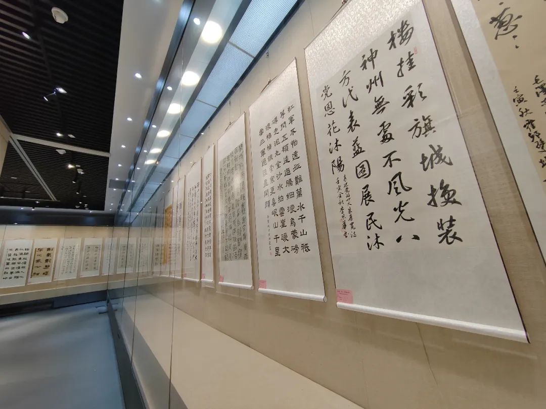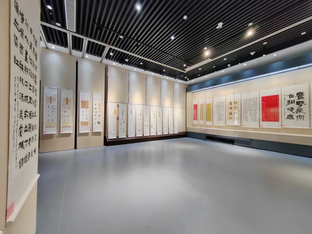 本次展览,书法篆刻艺术家们巧妙的将篆刻和书法艺术融为一体,作品形式多样、气韵华盛、神采其昌、累累新作、奕奕登堂。识凹凸分朱白,计翻正定阴阳。功其者众多,善拙者足有。亦有心裁别出者,依文才而奇创。遂握经纬于掌中,控远近于案上。其朱痕小而见世界大,印文短而得逸趣长。把方寸呈新天地,镂一指聚大风光。既能看到对悠久历史文化的传承,又能看到对祖国繁荣昌盛的期盼。可谓方寸之间包罗万象,文采生辉跃然纸上。