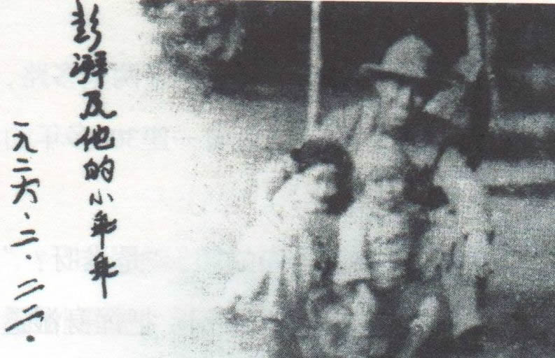 唯一一张与父亲和哥哥彭绛人的合影,对于彭士禄来说弥足珍贵,照片上有彭湃亲手写的字“彭湃及他的小乖乖”。