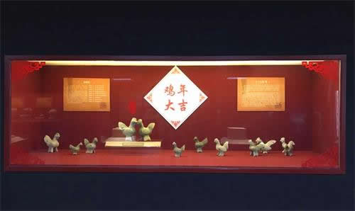 金鸡报晓,在新的一年开启新的篇章。为更好的烘托新年气氛,为广大游客提供一个吉祥喜庆的观赏环境,市博物馆陈列部与保管、安防两个部门携手合作,着力打造鸡年主题展区。对展柜展橱进行重新布置,为其贴上喜庆的边花与春联,并积极联动保管部,增设六件陶鸡为主题展柜添彩。陈列部作为博物馆的“设计师”,在新的一年里将继续开创新的展览格局,为游客展现最美的博物馆新貌。