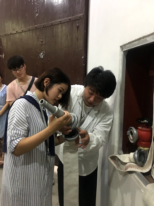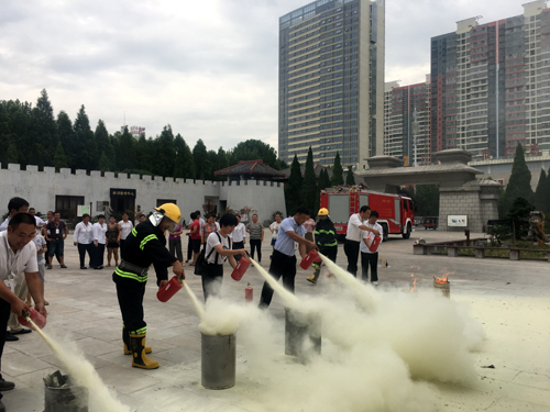 活动中,展厅消防警报器突然响起,“疏散游客、封锁入口、检查情况”,展厅、消防控制室、技防监控室值班安防员及时联动,短短的几分钟内,展厅及游客服务中心所有参观游客在安防员紧张有序指挥下,无一遗漏全部疏散到安全地带,展厅内防火卷帘及时关闭,确保有效的控制现场。另外,消防队员指导全体职工和现场游客实际操作掌握灭火器的使用、消防栓灭火等技能。