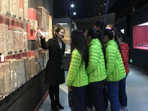 在讲解员的带领下,摄制组的多名同学走进展厅,聆听讲解。期间,他们认真听讲,仔细记录,争先恐后地回答讲解员的提问,深入了解了文物背后的故事,探寻了亳州历史文化的根源。