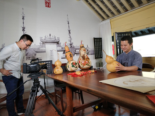 5月31日,省旅发委来到非物质文化遗产直播间,取景拍摄《研修安徽》旅游宣传片。