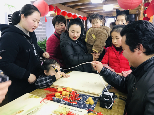 2018年12月30日由亳州市文化馆,亳州市博物馆和亳州市新华书店联合举办的暖冬非遗现场展演亲子活动在北关历史街区的非物质文化遗产直播间顺利进行。活动当天,直播间的许多传统手工艺老师的现场手工制作吸引了许多过往的游客驻足观看,当然还有许多亲子家庭也纷纷报名踊跃体验。无论是亳州剪纸,烙画葫芦还是皮影戏的展演桌前都聚集很多热情的小粉丝动手学习。最后的小主播环节更是让小朋友们更加近距离感受和发扬亳州文化。
