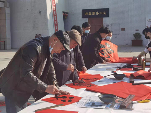 市博物馆、文化馆开展“迎新春、写春联、送祝福”春节系列活动 2021/02/07 冬日暖阳,如沐春风。春节将至,为更好的营造文明祥和的新春景象,2月7日上午,市博物馆、文化馆开展““迎新春、写春联、送祝福”春节系列活动”。活动邀请了亳州书法家协会的五位老师现场为大家书写春联,现场也邀请了社区的环卫工人参与此次活动,为他们提供免费春联书写。一张张笔酣墨饱的“福”字,表达着大家迎春纳福的美好祝愿。“春满乾坤福满门”、“岁岁平安福春来”,春联的福字不仅寄托了环卫工人们辞旧迎新、平安喜乐的美好愿望,也让大家感受到了中国传统文化的博大精深。