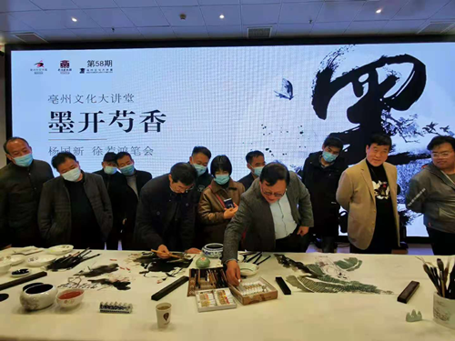为弘扬中华优秀文化传统,展示中国墨画的无限魅力,近日亳州市文化馆举办亳州文化大讲堂—墨开芍香。特邀中国美术家协会理事杨国新、中国美术家协会会员徐若鸿参与本次大讲堂活动。