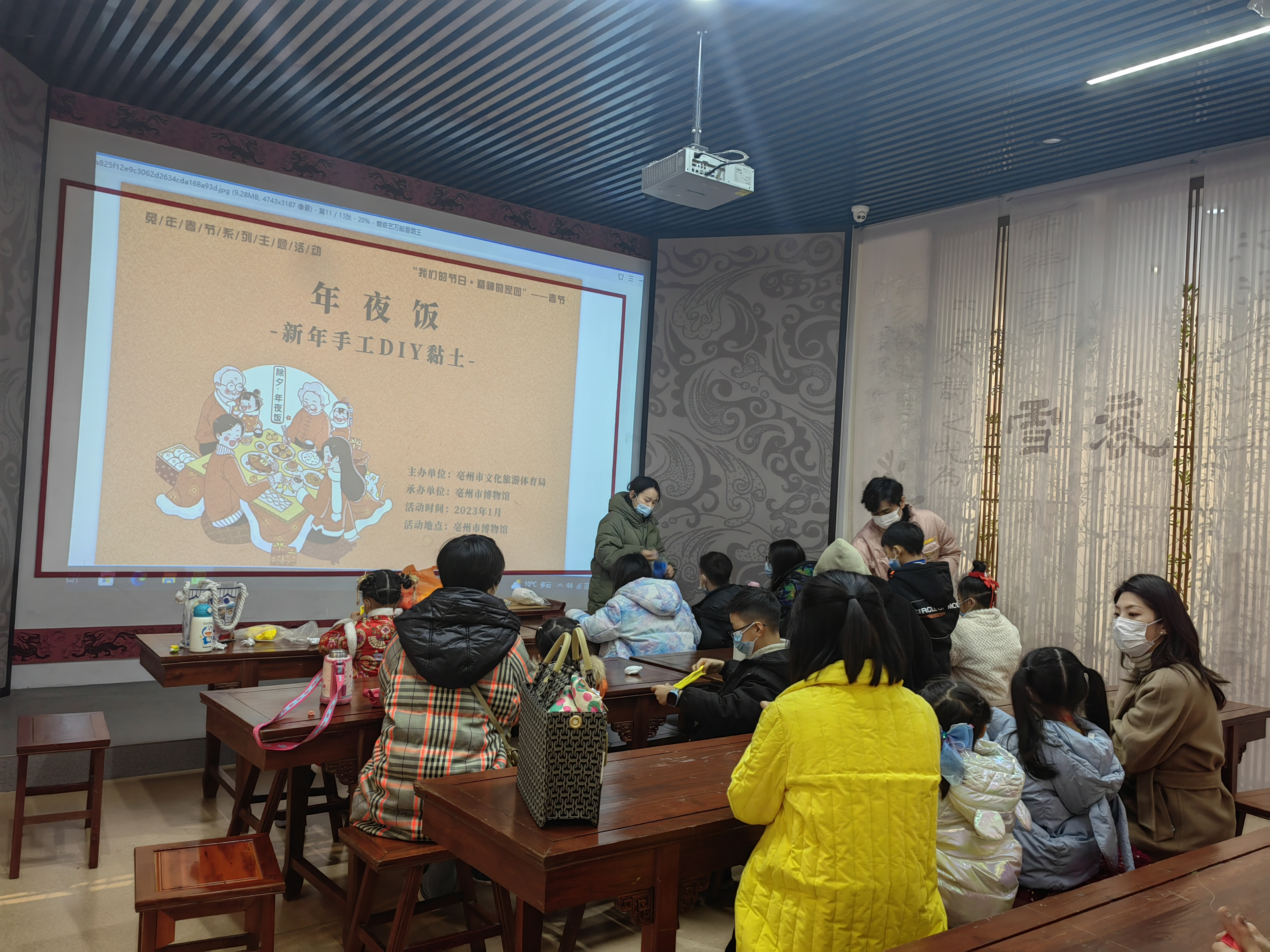 1月22日下午3点,由亳州市文化旅游体育局主办、亳州市博物馆承办的“年夜饭——新年手工DIY黏土”活动在市博物馆一楼亳博学堂开展。