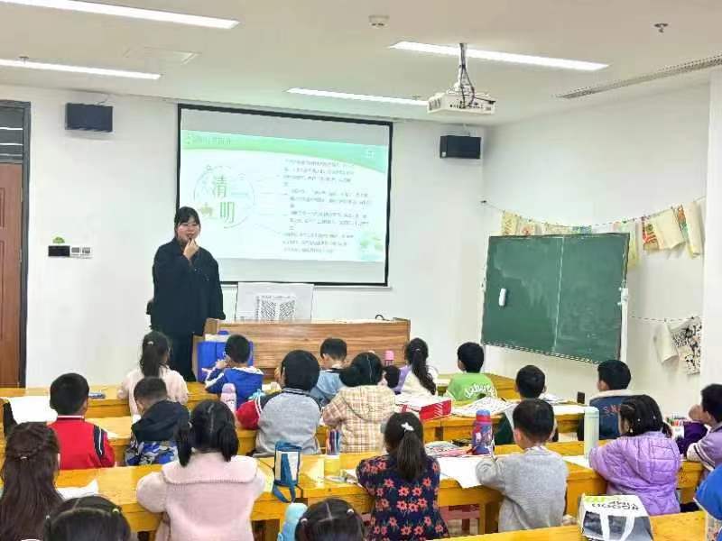 老师首先向孩子们讲述清明节的由来和习俗,如祭祖、踏青、食青团等,然后引出本次课堂“清明食青团”的主题,通过简单易懂的方式加深孩子们对清明节有关知识的了解和积累。