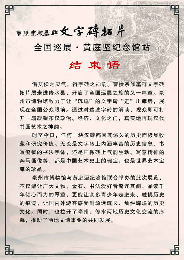 曹操宗族墓群文字砖拓片全国巡展——黄庭坚纪念馆