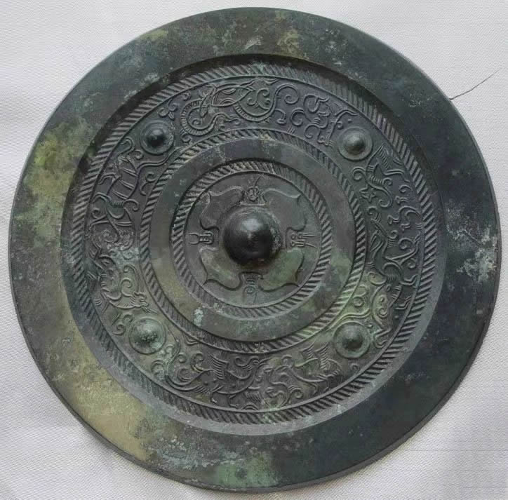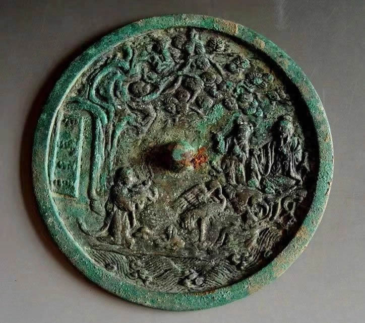 铜镜是古代中国人日常生活中的常务用具,其发展的历史极为漫长。铜镜在距今四千多年的齐家文化中就已经出现,而后经过商、西周、春秋,在战国得以发展,至汉唐臻于繁荣辉煌,又延续到宋元明清。清代中期,随着西方玻璃镜大量传入中国,铜镜的历史使命宣告完成。铜镜不仅是人们日常生活照容整装的实用品,也被用来佩挂装饰、驱邪佑福、传达情谊等,是一种具有珍贵艺术价值的工艺品。铜镜背面的纹饰和铭文,题材广泛,内容丰富多彩,反映了使用者和制作者所处历史时代的生活态度、审美情趣乃至整个社会风俗,写下了中国文化史上光彩夺目的一章。
