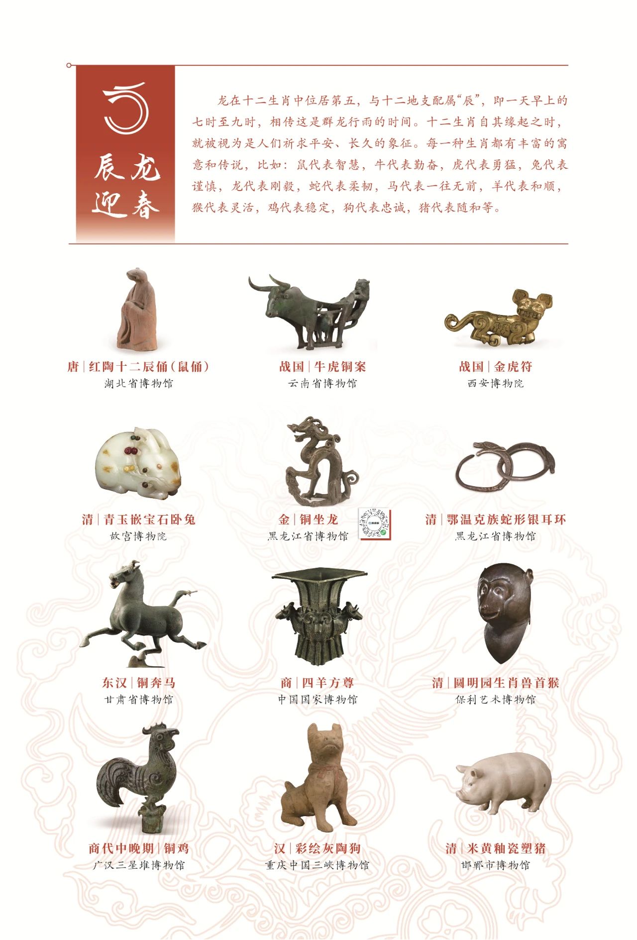 辞旧岁玉兔载誉返天宇,迎新春金龙携福降人间。龙,自古即为中华民族的象征,中国人以龙为祖,唯龙是尊。作为神话传说中虚构的神异动物,龙体长威严,上天入水,兴云降雨,以神秘、刚健、智慧、尊贵的形象存在于每一个中国人的心中,成为吉祥通天的化身。 值此新春佳节之际,由国家文物局主办,中国文物报社及全国多家省市博物馆携手共同承办的“龙行中华——甲辰龙年生肖文物大联展”将于明日在亳州市博物馆开展,数百幅祥龙题材的文物艺术品映像奉展于公众。展览时间从2月8日起至2月24日。