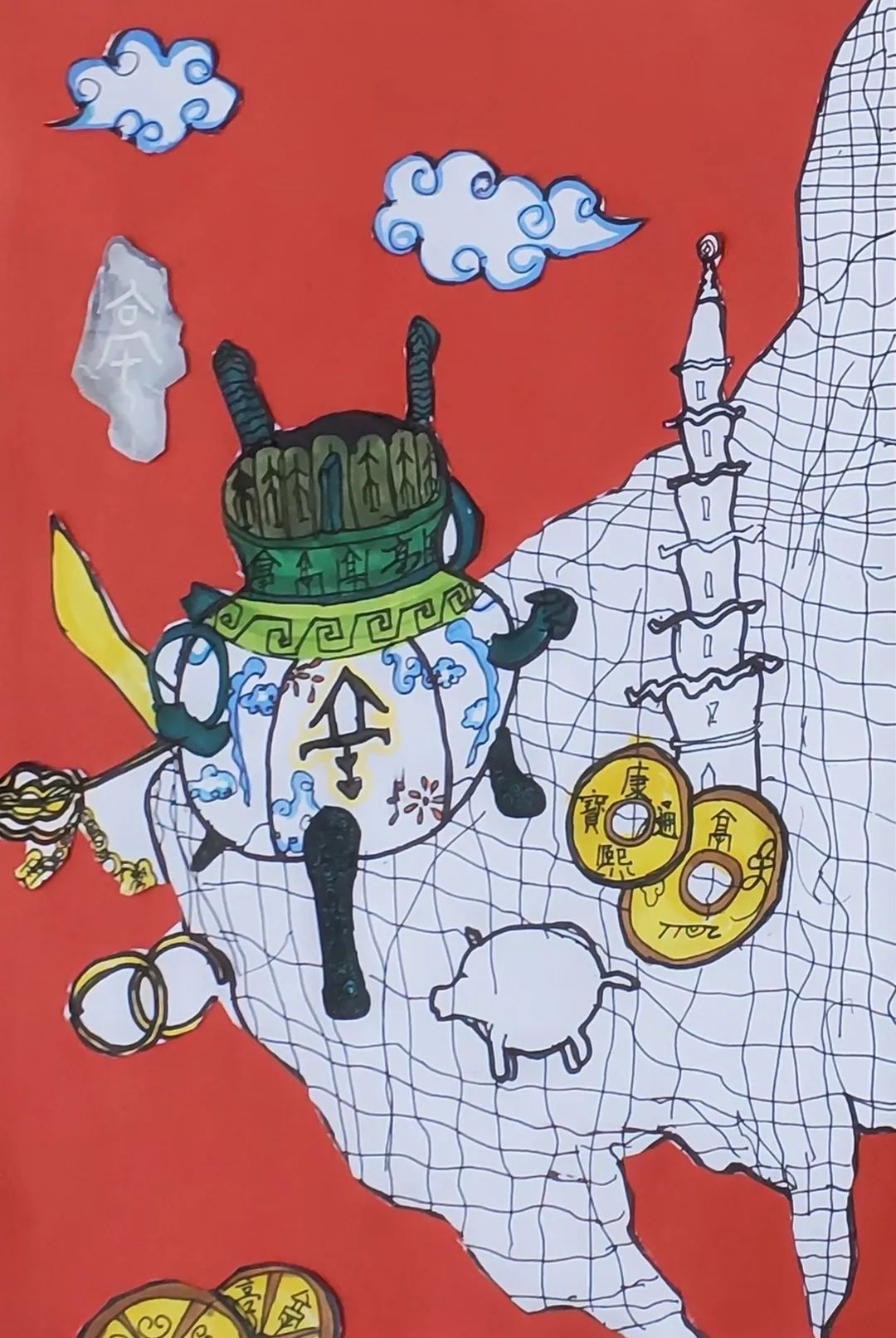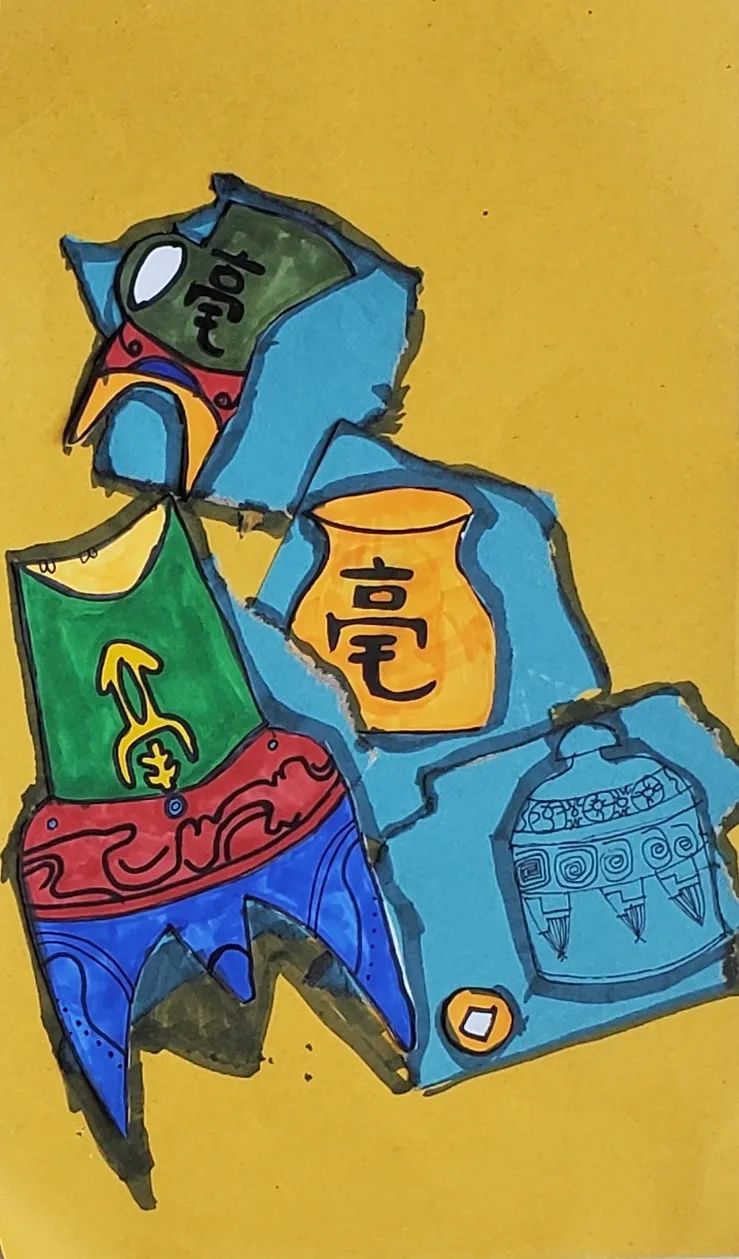 我在博物馆画文物 《 兽面纹方鼎 》王甜馨