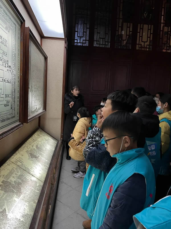 在亳州市展览馆中,小小讲解员们在工作人员的引领下,参观了城市规划、文化旅游、药业、酒业等多个展厅。