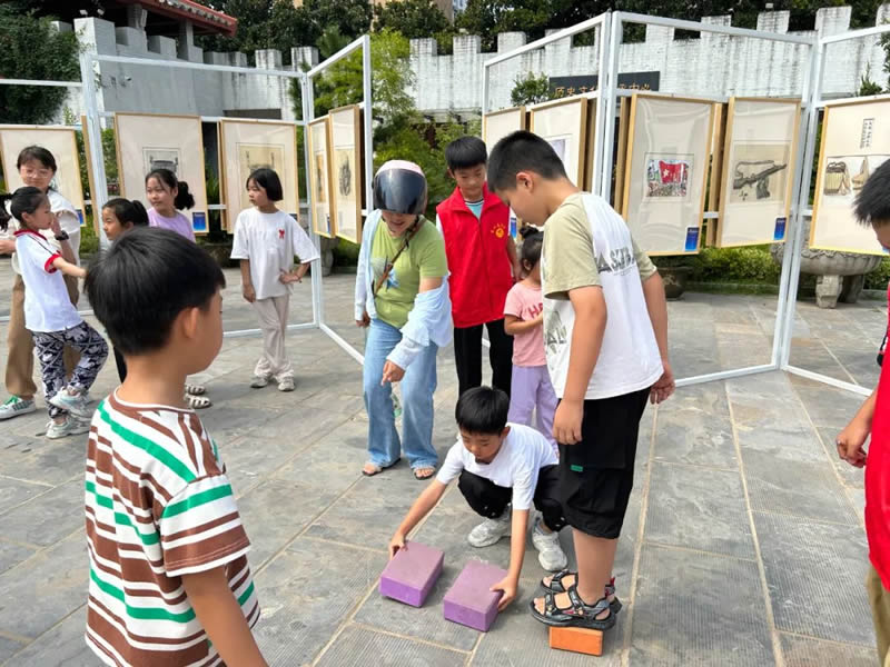 在抗战胜利纪念日之际,亳州市博物馆将长征故事讲给孩子们听,并合理利用一些运动器材,让孩子们以闯关的方式模仿当年红军爬过的雪山、走过的草地,通过亲身体验,让孩子们感受到红军遇到的艰难险阻。