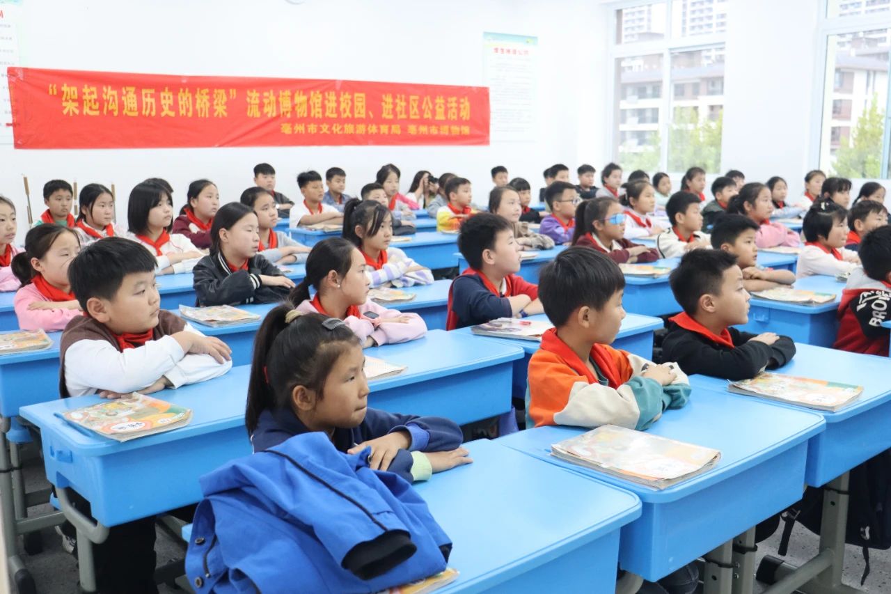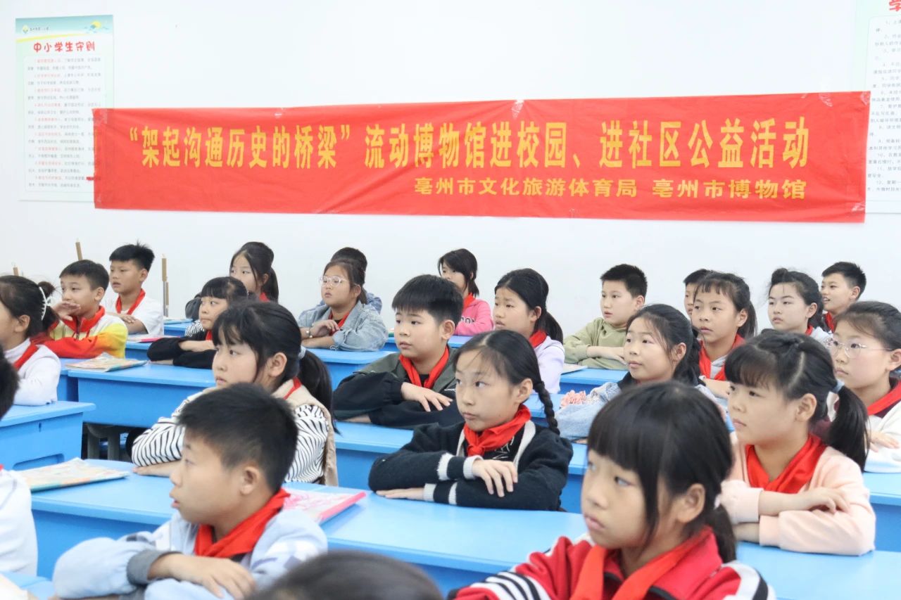 为充分发挥市博物馆爱国主义教育基地的作用,引导青少年利用博物馆资源开展实践活动,促进青少年健康成长和全面发展,大力弘扬中华优秀传统文化、红色文化、社会主义先进文化,培育和践行社会主义核心价值观,由亳州市文化旅游体育局主办,亳州市博物馆承办开展“架起沟通历史的桥梁”流动博物馆进校园、进社区公益活动。