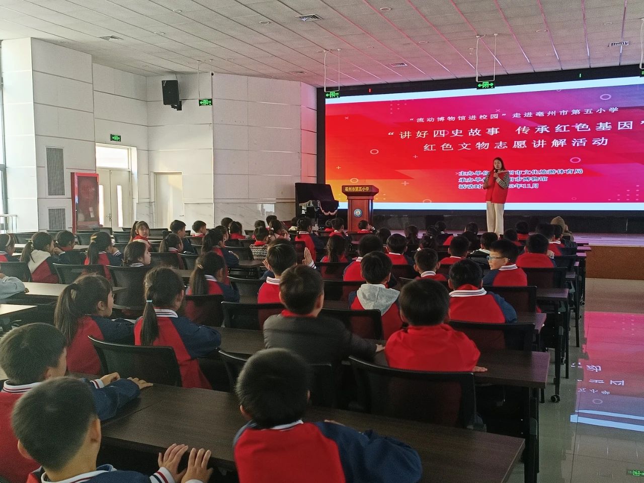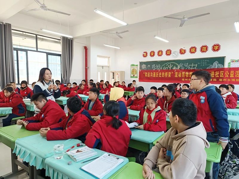 11月8日和14日走进亳州市第五小学,带领广大学生学习以《讲好四史故事 传承红色基因》《博物馆奇妙游》为题的课程。