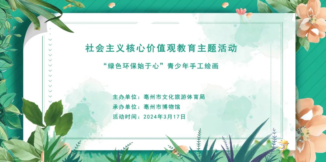 3月17日10:00-11:00 社会主义核心价值观教育主题活动“绿色环保始于心”青少年手工绘画