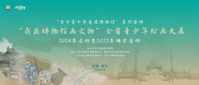 7月20日,“我在博物馆画文物”全省青少年绘画大展2024年启动暨2023年颁奖活动在亳州市举办。此次活动由安徽省文物局主办,安徽省博物馆协会、亳州市文化旅游体育局承办,亳州市博物馆、亳州市博物馆联盟协办,安徽省文化和旅游厅(省文物局)一级巡视员何长风,亳州市委常委、宣传部部长吉洪武,亳州市政府党组成员、副市长薛冰等出席并参加相关活动。
