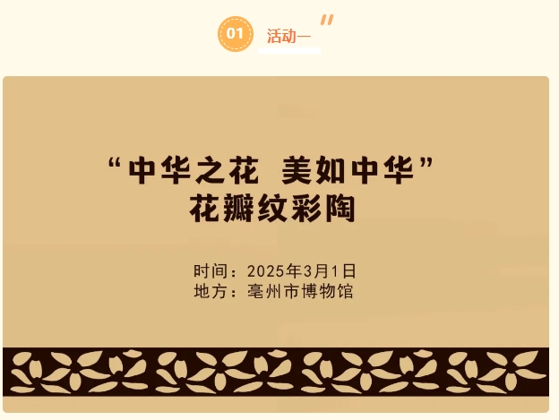 课程人数:20人 课程时间:3月1日10:00 上课地点:亳州市博物馆亳博学堂