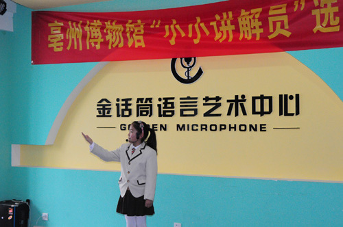 3月5日上午,博物馆对团体报名的亳州金话筒语言艺术中心开展了“小小志愿者”首轮选拔赛。该中心共有50名符合条件的同学积极报名参加比赛,每个同学在试讲之后,由博物馆考核组对每位同学的讲解基本要求及技巧、仪容仪表、应变能力等方面做考核。通过此次选拔赛,共有16名同学脱颖而出,将参加博物馆组织的专业“小小志愿者”知识培训,培训内容不仅对孩子们进行文物基础知识、语言表达、讲解技巧、形体仪态等方面的基础训练,还提高他们的语言表达能力,普及历史文化知识,并培养孩子们尊重他人和服务社会的优秀品质。