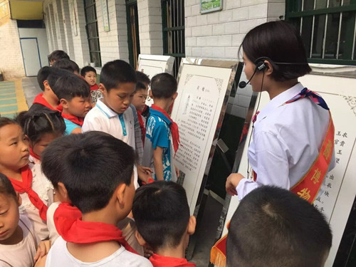 6月15日上午,流动博物馆走进育苗小学,为百名学生送上了一堂别开生面的历史课。在育苗小学,一幅幅展板将历史名人、历史遗迹和部分历史文物以图片展现在小学生们的眼前,由博物馆的金牌讲解员现场作了生动讲解。并在讲解结束后,同学们积极的参加有奖问答活动,更是把活动推向高潮,通过此次活动,让全校学生不出校门就全面了解亳州悠久的历史,加深了孩子们对亳州文化的印迹,深刻领略家乡深厚的文化底蕴,在感受家乡日新月异变化的同时,也增强了青少年的历史责任感和使命感。