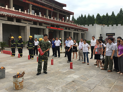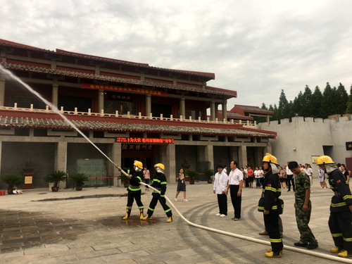 活动中,展厅消防警报器突然响起,“疏散游客、封锁入口、检查情况”,展厅、消防控制室、技防监控室值班安防员及时联动,短短的几分钟内,展厅及游客服务中心所有参观游客在安防员紧张有序指挥下,无一遗漏全部疏散到安全地带,展厅内防火卷帘及时关闭,确保有效的控制现场。另外,消防队员指导全体职工和现场游客实际操作掌握灭火器的使用、消防栓灭火等技能。
