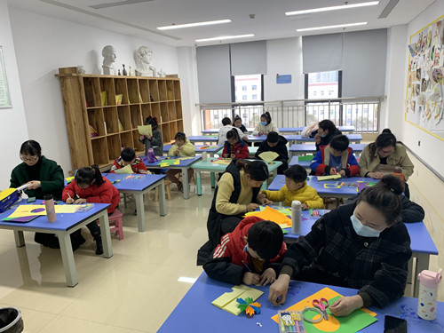 志愿者老师会向孩子们介绍活动的主题、作品材料、制作方法及用途;展示精美的粘贴画、剪裁画、彩绘画。通过剪、粘、贴、画等手法,熟练的制作手工作品,绘制各种图案。孩子们充分发挥想象力,展现他们的自主性、积极性和创造性。活动场上,通过“亲子交流”、“亲子互动”,让家长和孩子感受到亲子合作共同创作的乐趣,增进亲子之间的感情!与此同时孩子们的动手能力在轻松愉悦的氛围中得到了提高,想象力和创造力得到了表现。作品完成后,孩子们互相展示,分享喜悦。