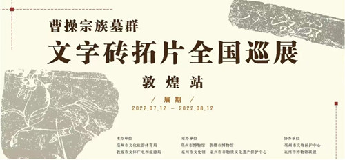 7月12日,由亳州市文化旅游体育局、敦煌市文体广电和旅游局主办,亳州市博物馆、敦煌市博物馆、亳州市文化馆、亳州市非物质文化遗产保护中心承办的“曹操宗族墓群文字砖拓片全国巡展˙敦煌站”在敦煌市博物馆正式开幕,为观众打开了一扇凝望东汉政治、经济、文化之门,真实地再现汉代书画艺术之神韵。展期自7月12日至8月12日。