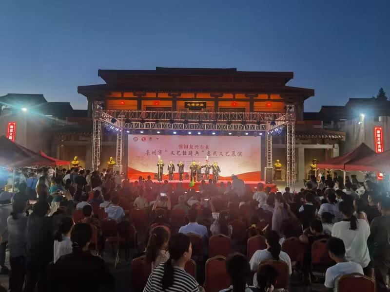 为深入贯彻落实习近平总书记在文化传承发展座谈会上的重要讲话精神,坚定文化自信、秉持开放包容、坚持守正创新的理念。2023年6月9日下午,由亳州市文化旅游体育局主办,亳州市博物馆、亳州市文化馆、亳州市非物质文化遗产保护中心承办的强国复兴有我—亳州市“文艺轻骑兵”惠民文艺展演活动在市博物馆圆满举行。此系列活动精选了国家级非遗项目《华佗五禽戏》、二夹弦《梁祝》选段等12个节目,内容涵盖了音乐、舞蹈、非遗等,传统与现代结合。用群众喜闻乐见的形式,将主旋律文艺作品送到百姓家门口。