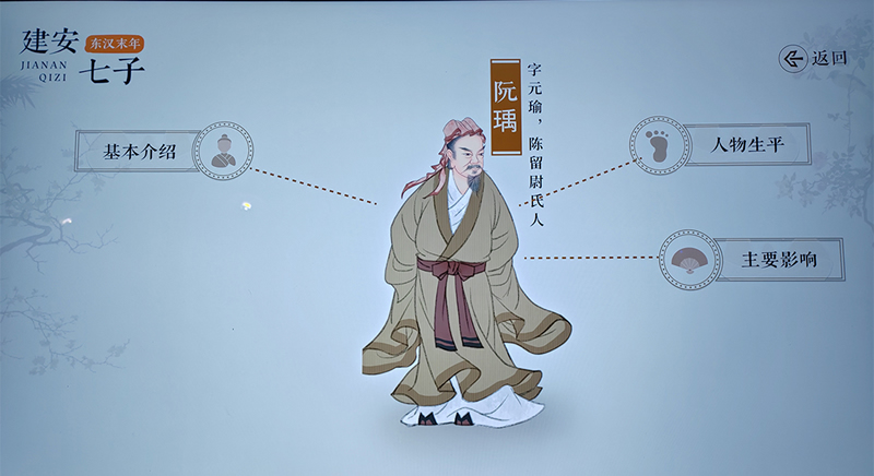 6.阮瑀 (?-212) 字元瑜,陈留尉氏(今河南开封)人,建安七子之一。所作章表书记很出色,名作有《为曹公作书与孙权》。诗有《驾出北郭门行》,描写孤儿受后母虐待的苦难遭遇,比较生动形象。阮瑀的音乐修养颇高,他的儿子阮籍,孙子阮咸皆是当时名人,位列“竹林七贤”,妙于音律。明人辑有《阮元瑜集》。