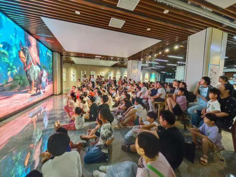 夜晚的大雨浇不灭大家的期待,尽管电影还未开始,但闻讯而来的市民早早地带着孩子找到了观影的绝佳位置。晚上7点,电影准时开场。室外的大雨,掩盖不住展厅里的惊呼声与欢笑声,跌宕起伏的故事情节牵动着观众的心情,大朋友和小朋友们随着电影主人公的惊险奇遇惊呼,又因主人公的诙谐放声欢笑。一楼城市阅读空间同步开放,市民也可以在书籍和阅读的海洋中畅游。活动引得市民强烈反响,收获一致好评,大家表示现场也很有氛围感,带着孩子在文化馆一起看电影,不仅让孩子多了一次“新”体验,在观看中学习主人公不放弃永远拼搏的精神,也是自我放松的好机会。